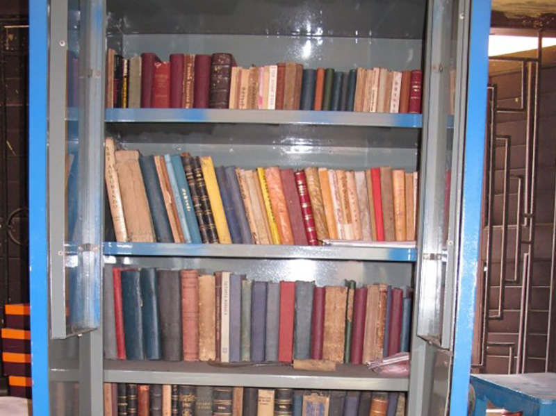 Covered with deacidified paper and starched red cloth to protect against pests
